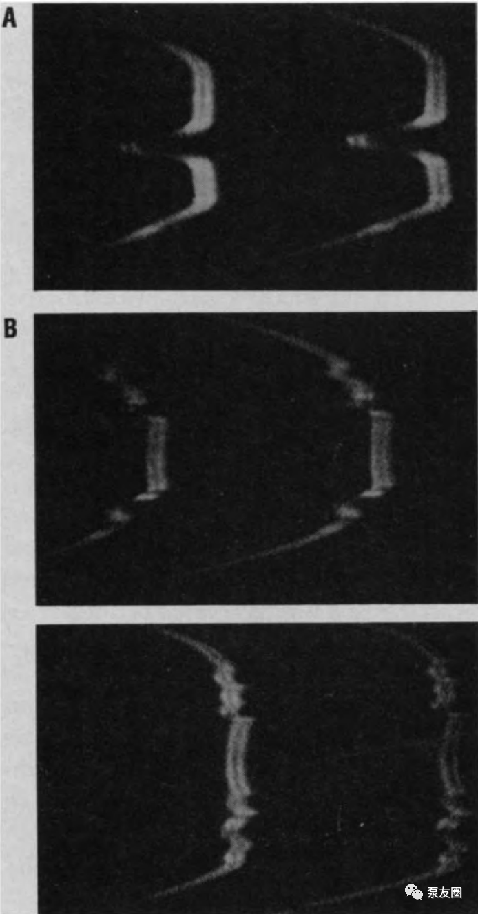 迄今為止,此類實驗無法確定空蝕發(fā)生時氣泡的形成—發(fā)育—破裂周期的確切階段 (6)??张萆L和破裂的整個過程通常發(fā)生得非常迅速(10-6, 到10-3 s),并且所有有趣的特征都具有亞微觀尺寸。由于這些原因,很難研究空泡的快速增長和破裂,尤其是這些過程與(彈性流體動力學(xué))表面變形以及最終空蝕之間的關(guān)系。然而,通常認(rèn)為空蝕只發(fā)生在空泡破裂(消亡)期間(4-7)。