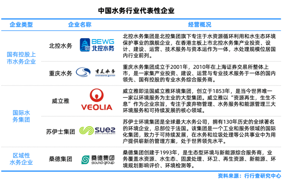 大型國有水務企業(yè)、國際水務集團以及區(qū)域性水務企業(yè)成為水處理行業(yè)的主要競爭者。