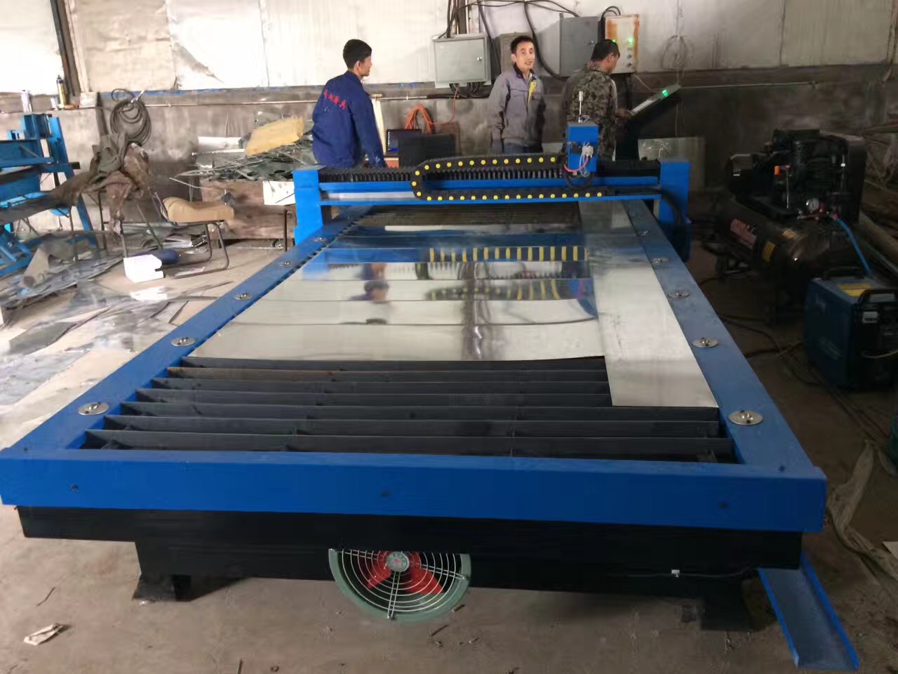 6、本機具有獨特的抽煙除塵裝置以及抽風式切割工作臺和熔渣儲存裝置,創造良好工作環境。